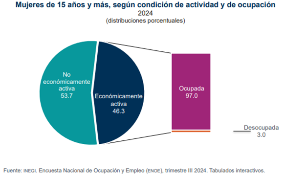El presidente del organismo, Gerardo Cleto López Becerra, destacó que las mujeres representan un pilar esencial en la economía nacional. De acuerdo con la Encuesta Nacional de Ocupación y Empleo (ENOE) 2024, elaborada por el Instituto Nacional de Estadística y Geografía (INEGI), el 46.3 % de las mujeres de 15 años y más forman parte de la población económicamente activa; de ellas, el 97.0 % se encuentra ocupada, lo que refleja la relevancia de su trabajo diario en los distintos sectores productivos.